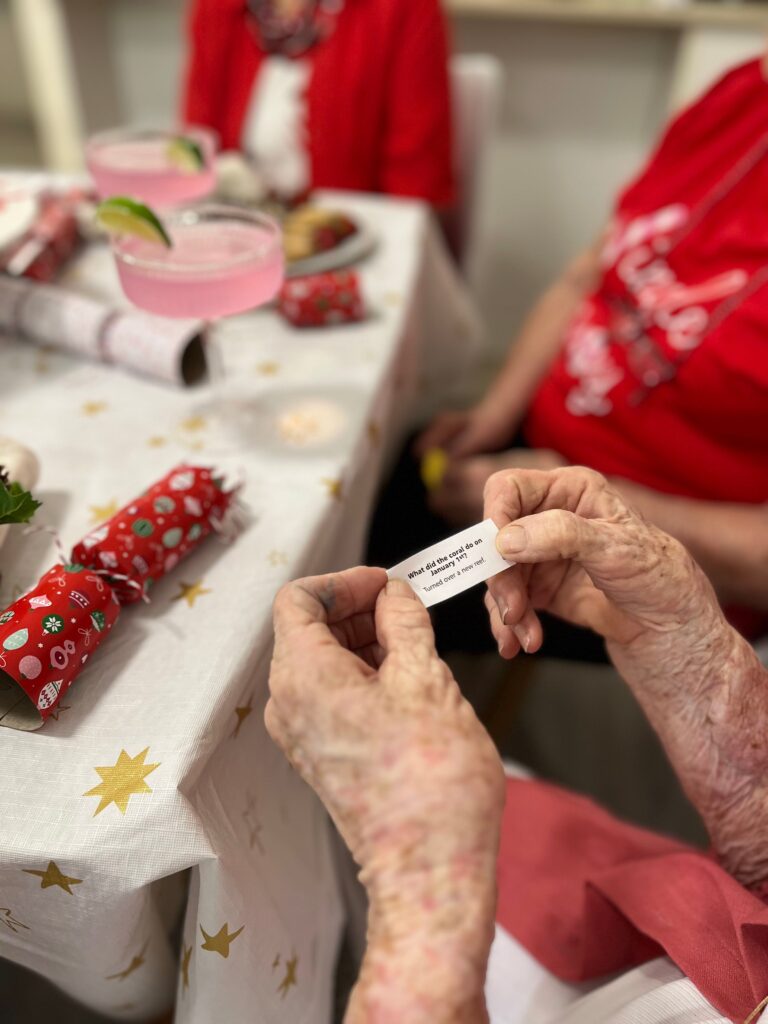 CRACK UP: Residents broke bon-bons, donned paper crowns and shared jokes over their festive feast. Picture: Maddison Bywater