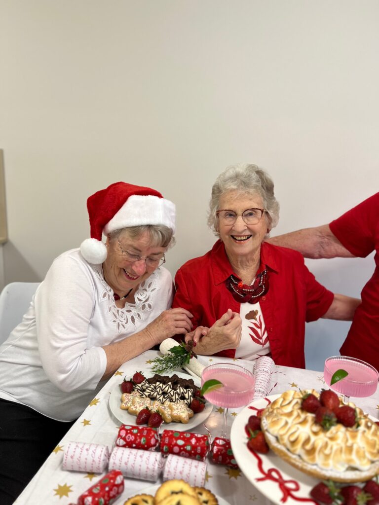 FESTIVE CHEER: Seasons residents (from left) Barb and Gilda kicked off the festive season with refreshing pink lemonade, delicious food and plenty of laughter. Picture: Maddison Bywater