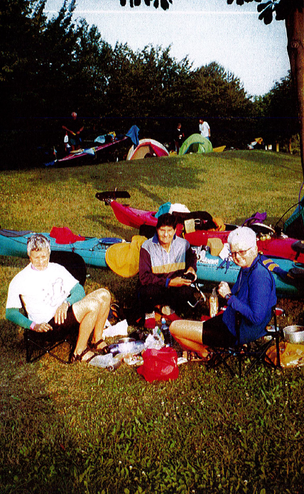 PADDLE PALS: Sal and friends stop for a bite to eat after a busy morning out on the water. Picture: Contributed