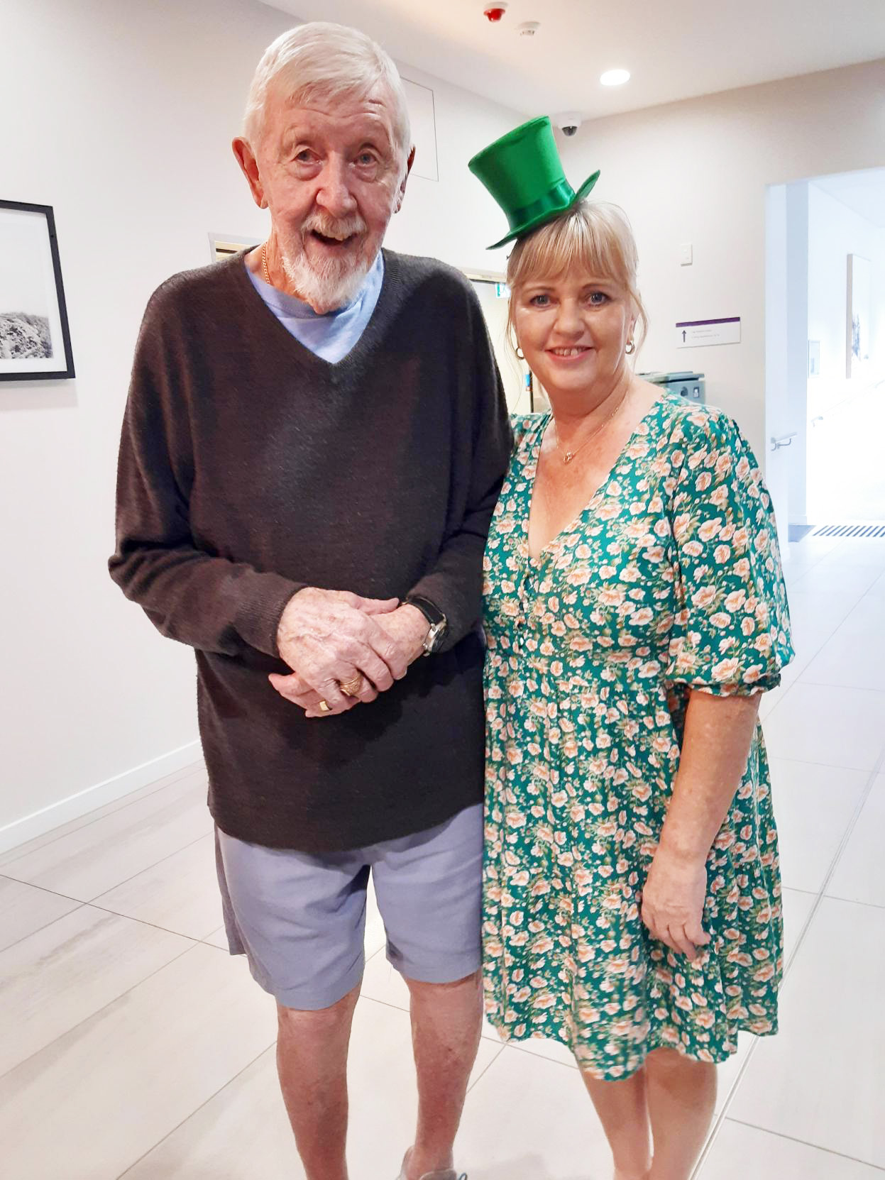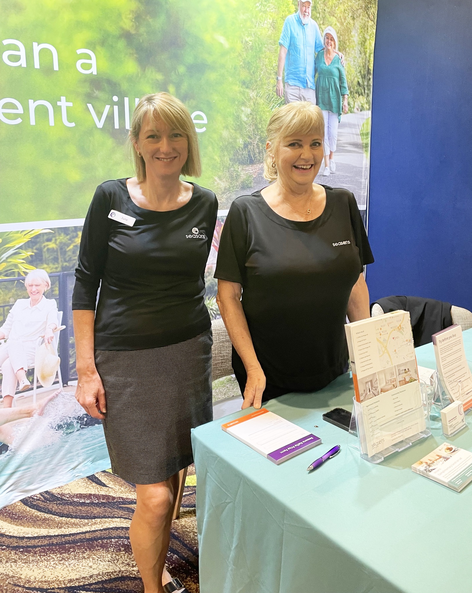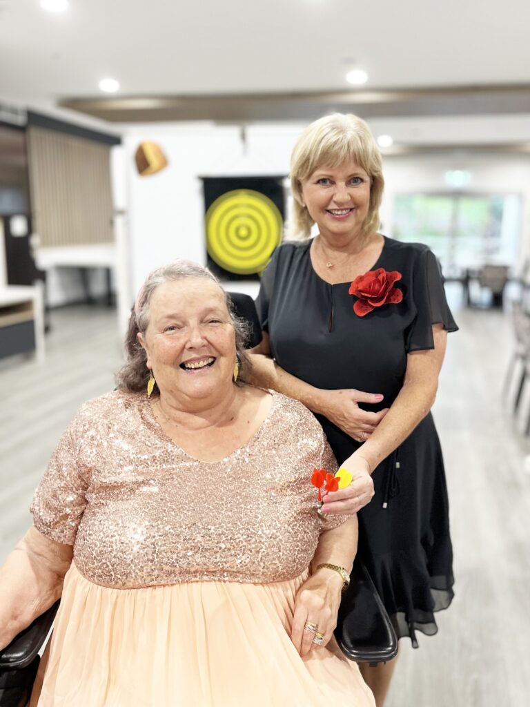 TIME FLIES: Seasons Sinnamon Park Sales Consultant Chris Middleton (right) with a resident at a community event, recently celebrated her five-year work anniversary. Picture: Supplied